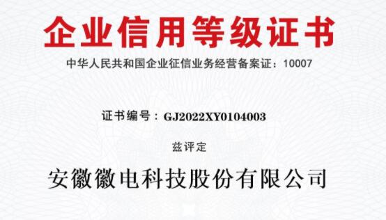 • 徽電科技榮獲“AAA級(jí)企業(yè)信用等級(jí)”認(rèn)證